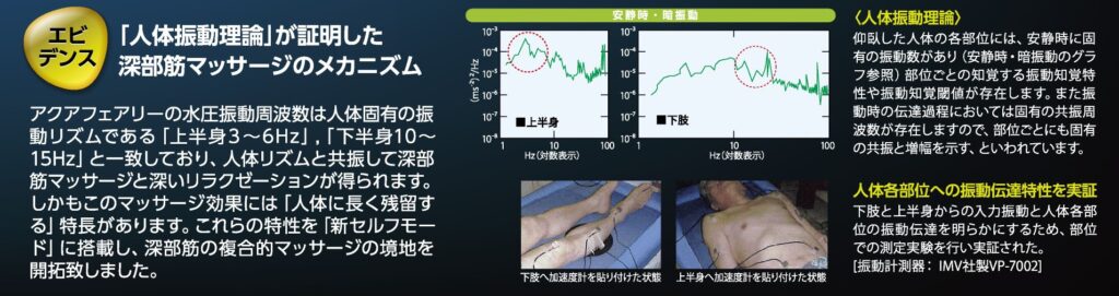発生する水圧振動は、人体各部の持つ固有振動数と共振し、